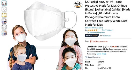 Additionally, the makers of n95 and kf94 child masks should be prosecuted for false advertisement. They have no data that these masks adhere to these particle targets in kids. I would seek criminal, not just civil, charges. This is consumer fraud with implications that harm children.