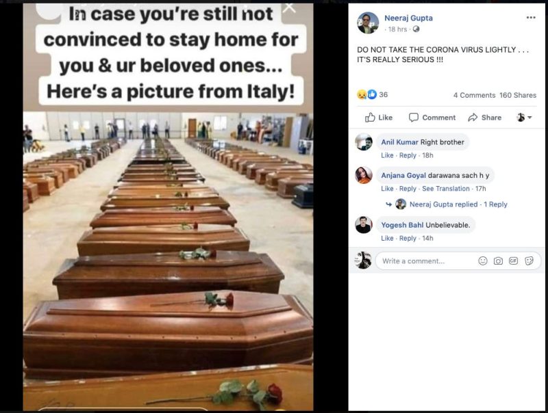 Various news sources quickly pointed out that the image of hundreds of wooden coffins that triggered panic around the world had nothing to do with Covid. From Reuters: