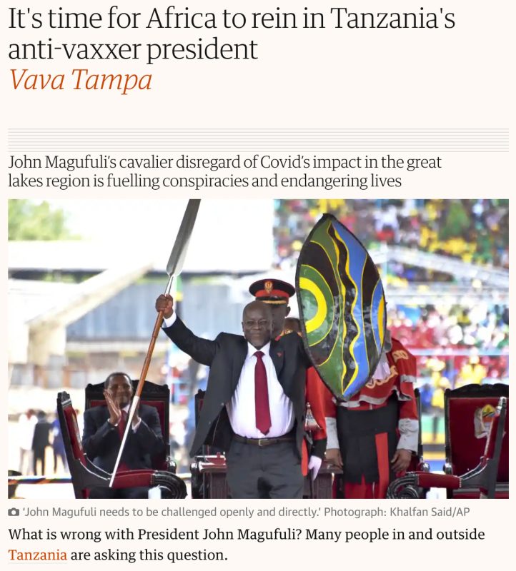 Others were not so lucky. The President of Tanzania, John Magufuli, embarrassed the World Health Organization by testing a goat and a pawpaw for Covid — both tests came back positive. On February 8, 2021, the Guardian, with funding from the Bill & Melinda Gates Foundation announced that, “It’s time for Africa to rein in Tanzania’s anti-vaxxer president.”