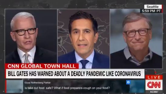 Every night during the height of the pandemic, when millions of Americans were locked down in their homes with nothing to do, billionaire psychopath Bill Gates, who did not finish college, bought his way onto Anderson Cooper 360 (CNN) where actual neurosurgeon, Dr. Sanjay Gupta, was forced to treat Gates as the expert on the pandemic.