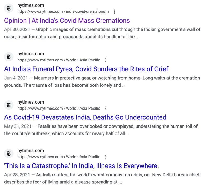 Next, one or more individual states in India had the temerity to provide its citizens with blister packs containing zinc, doxycycline, and ivermectin (“Ziverdo kits”) — to prevent and treat Covid. Pharma saw this as an attempt to deny them one billion new vaccine customers so they called in the mainstream media to bomb them into submission. This was the carpet bombing over five weeks just from the New York Times: