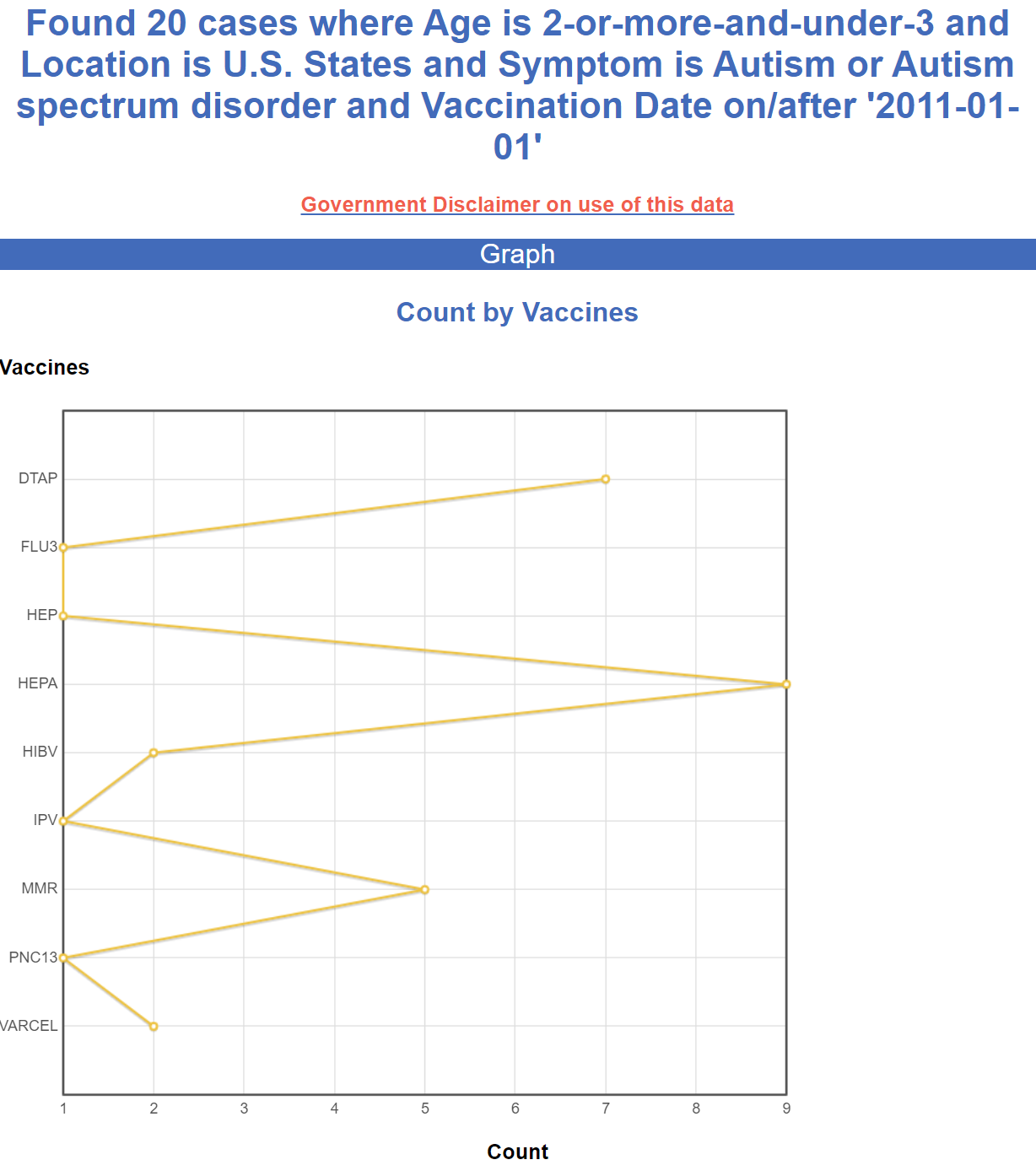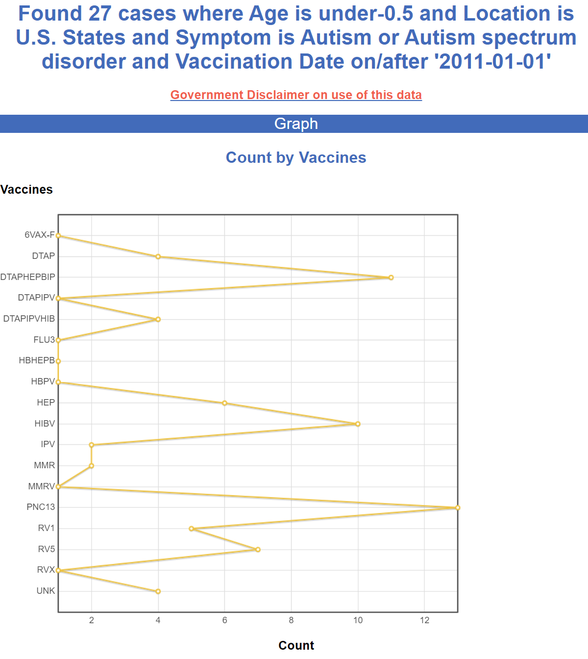 I did a VAERS query over all time and all vaccines to look at the total autism counts.