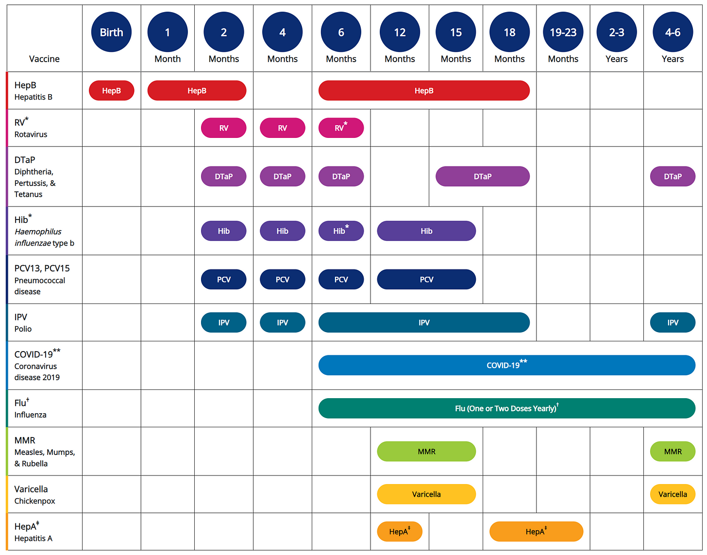 Here’s what the CDC childhood vaccine schedule looks like today: