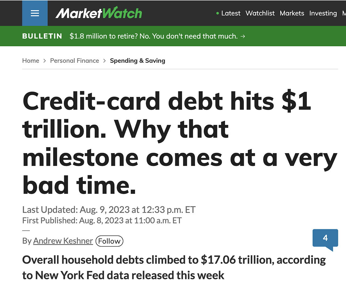 And yet we are getting bombarded these days by various enticements to taking on debt. Maybe you are also getting lots of those enticing credit card and loan solicitations? Never forget – in the modern world, debt is a form of indentured servitude.