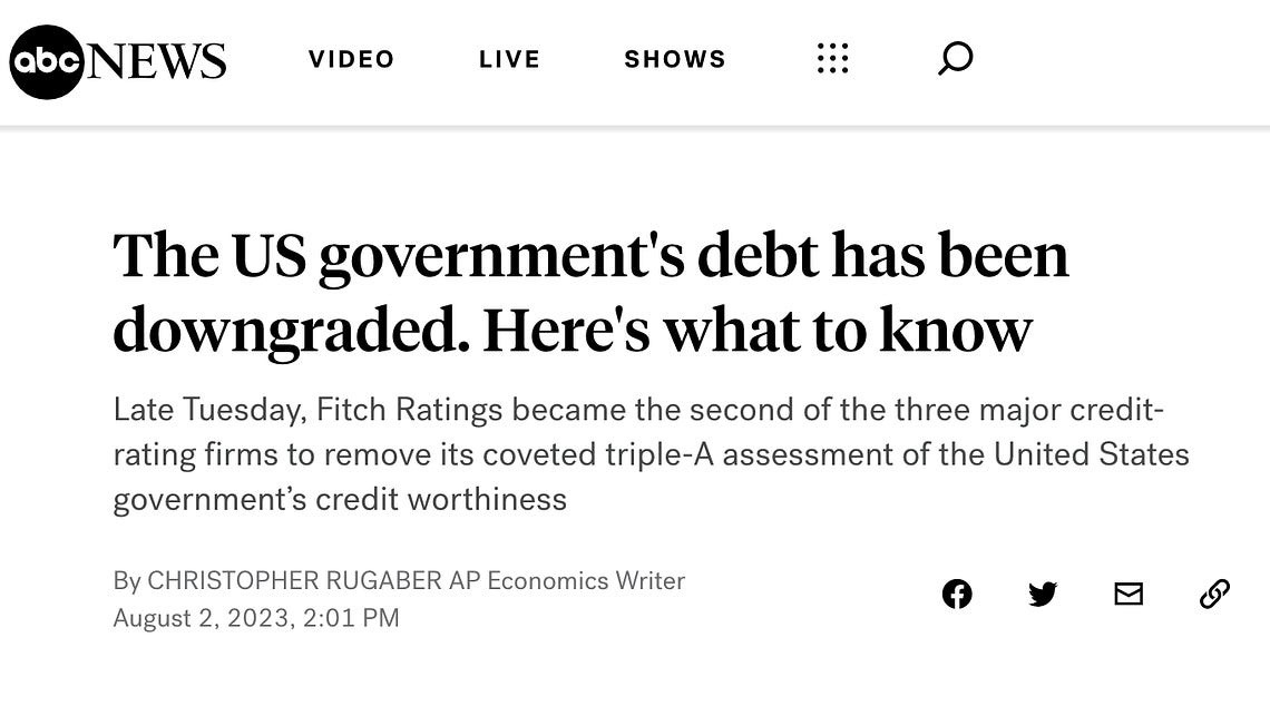 However, a downgrade in the AAA rating of the US government’s credit worthiness is a big deal by anyone’s standard.