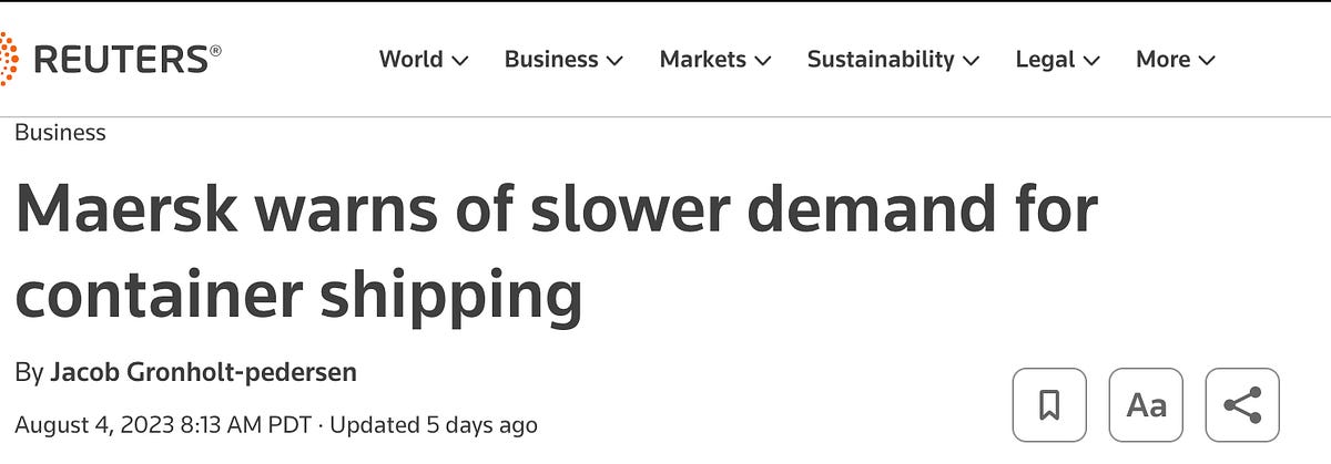 COPENHAGEN, Aug 4 (Reuters) – Shipping group A.P. Moller-Maersk (MAERSKb.CO) warned on Friday of a steeper decline in global demand for shipping containers by sea this year, prompted by muted economic growth and customers reducing inventories.
