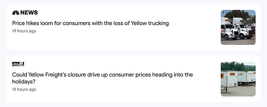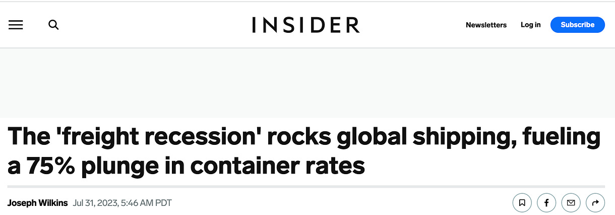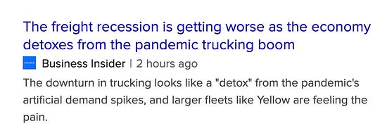 - The downturn has also affected the US trucking business, prompting the Fed to acknowledge the “freight recession“