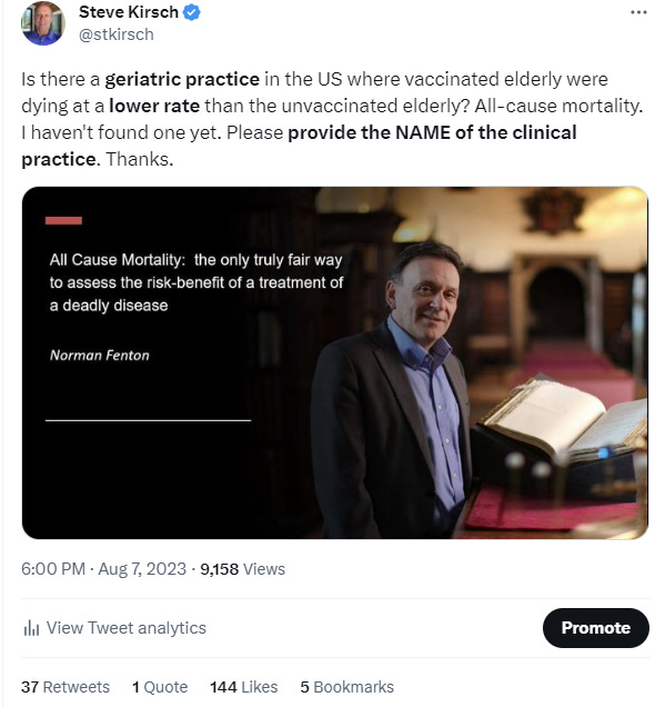 If the vaccines really reduced mortality as they promised, then every single nursing home and geriatric practice in the US would be reporting success stories of all-cause mortality dropping.