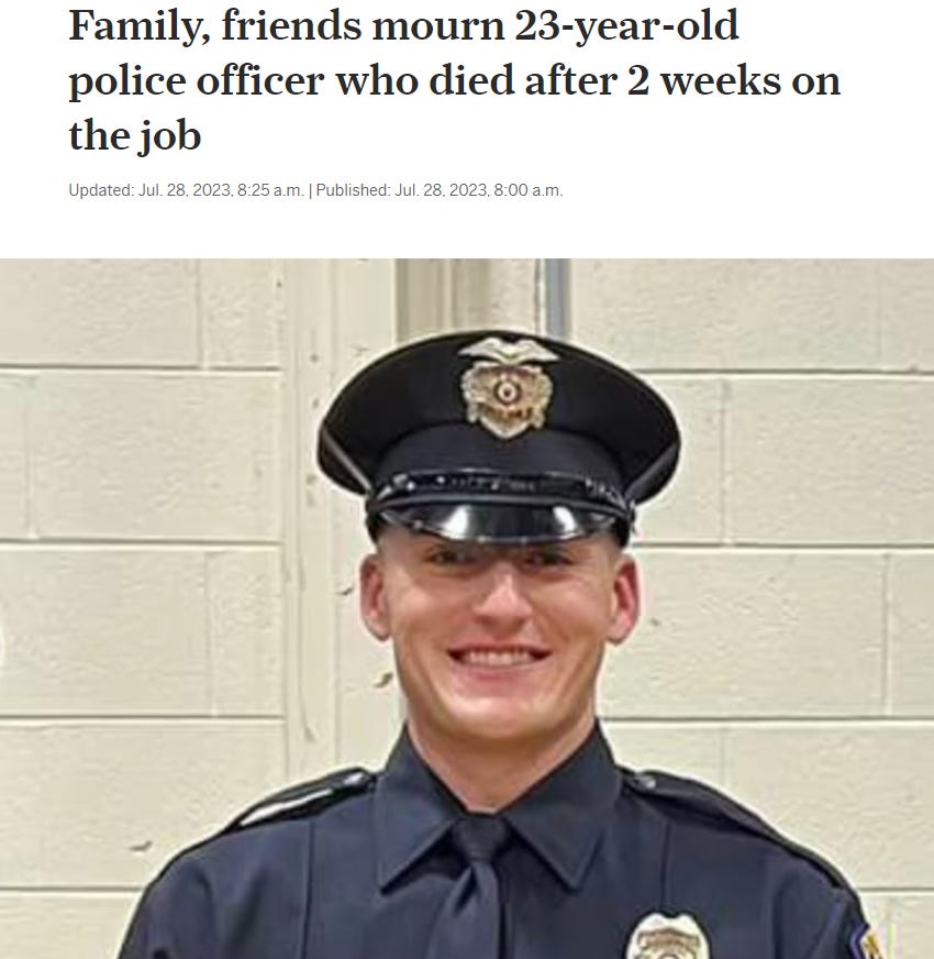 - A 23-year-old police officer from New Jersey suddenly died this week during a routine workout, according to his family.