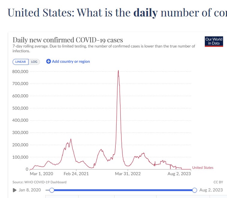 The only good news was that the number of COVID infections dropped which means the COVID deaths dropped which resulted in a big drop in the all-cause mortality. Could this have been caused by the vaccine reducing the risk of infection? Yes, it’s possible. But we have excellent studies, such as the Cleveland Clinic study, showing the vaccine does the opposite: making you more likely to get COVID. And in nursing homes where we could validate the data from an insider, we learned that both the COVID rates and IFR dramatically increased right after the vaccine; this one facility cannot be explained away as a “fluke.” So the most likely hypothesis is that the virus simply burned itself out (and we see the ebb and flow of the COVID case rates over time where we actually got higher highs compared to the pre-vaccine period which is consistent with the studies (like the Cleveland Clinic study) that the vaccine made things worse).