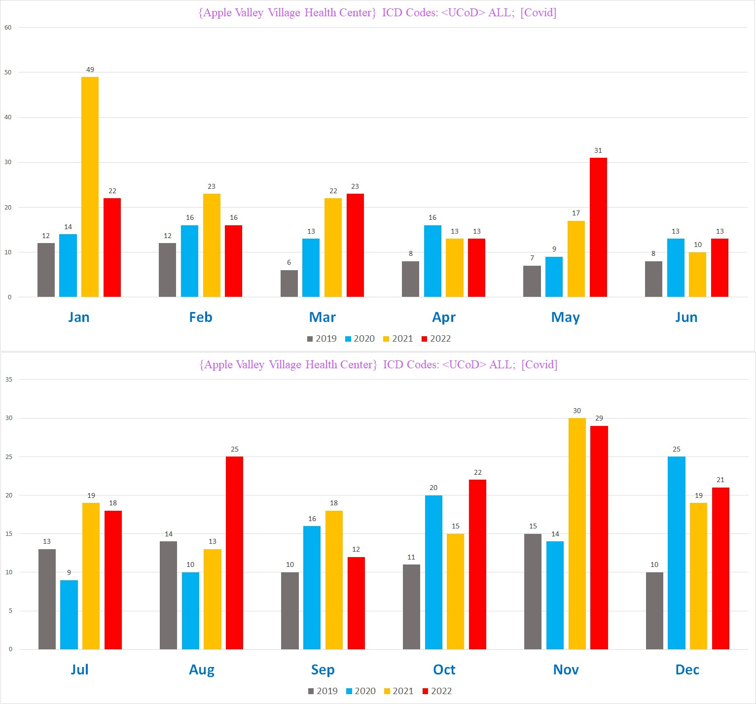As you can clearly see the troubling news: the deaths per month did not reset back to the baseline rate. Here are the all-cause mortality counts since 2019: