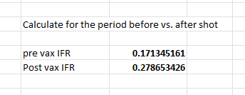 This is simple to understand. I computed the overall IFR on the period before the vax. I computed the overall IFR on the period after the vax. That’s it.
