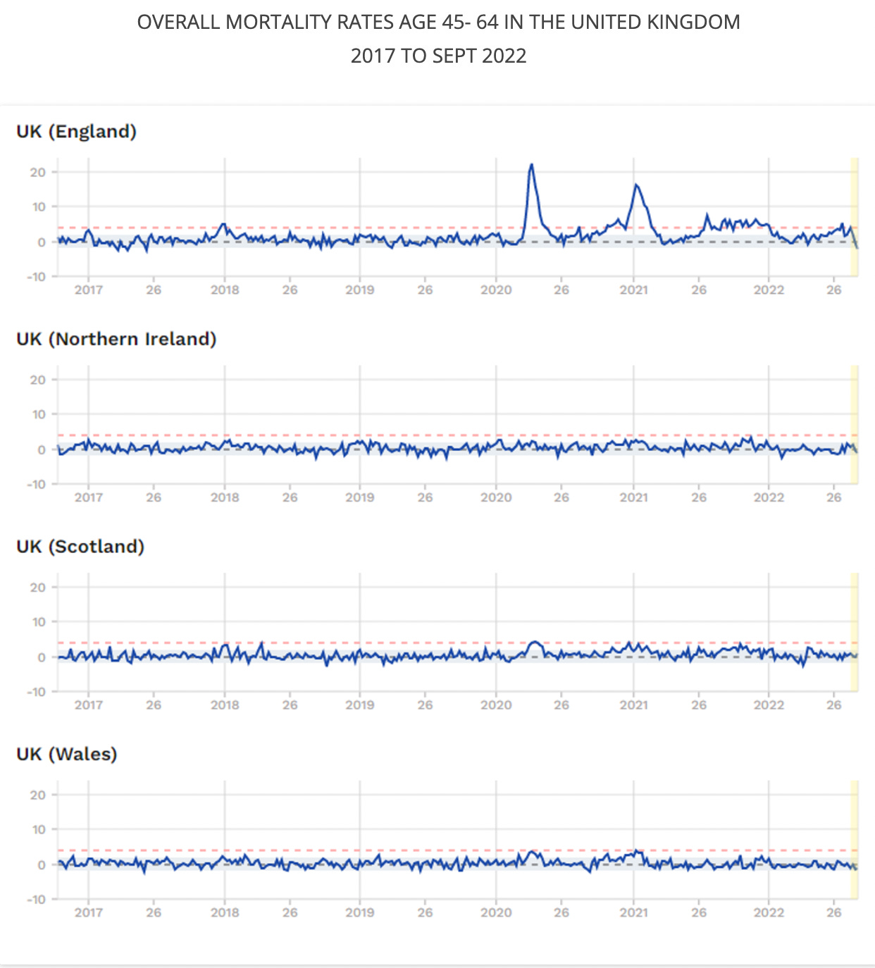 •It’s impossible to know which thing actually caused the excess increase in death (e.g., a good case can be made that the lockdowns or the vaccines killed more people than COVID-19). However, when excess mortality data is presented, this is never acknowledged and the increase in it is always attributed to the prevailing narrative.