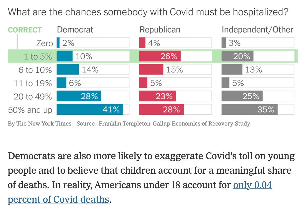 Likewise, a March 2021 survey, found the general public, especially those politically primed to fear the virus, also fell victim to the misinformation promoted by our healthcare authorities: