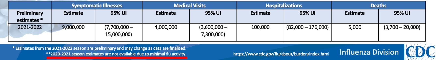 Given that, per the CDC, influenza virtually disappeared during COVID-19, this almost certainly means the CDC has done one or more of the following: