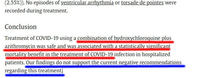 Read this again: those who did not receive HCQ had a 57% greater chance of dying, all other things being equal!