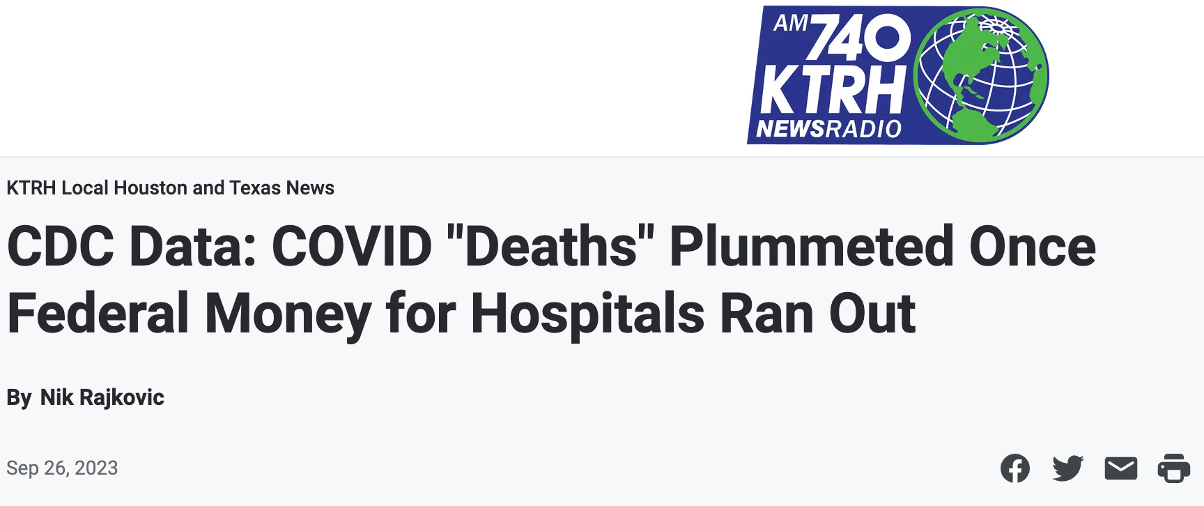 Long ago and far, far away I had a recorded conversation with Mr. Joe Rogan (#1757) which briefly “broke the internet” and caused Google, aging rockers like Neil Young, and the entire censorship/governmental/industrial complex to loose bladder control and wet themselves. And one of the things that Joe and I discussed were the perverse incentives provided to hospitals by the USG to inflate the COVID death count. Now of course, just like my description of Mattias Desmet’s “Mass Formation” hypothesis (for which I used the terminology of his earliest podcasts “Mass Formation Psychosis”), my reporting that this was going on was “factchecked” as false.