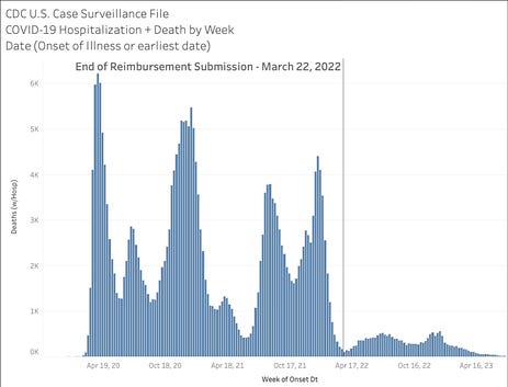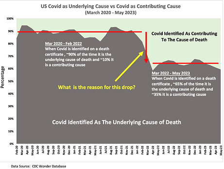After the $178 billion in CARES Act money for the “Provider Relief Fund” dried up in January 2022, hospital coders were no longer required to list COVID as cause of death.
