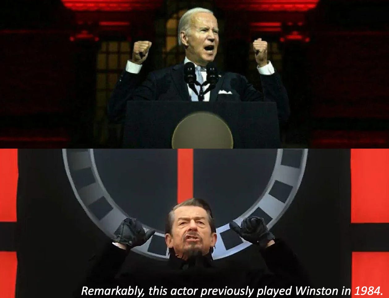 Note: Biden’s speech juxtaposed with the fictional dictator’s speech can be viewed here.
