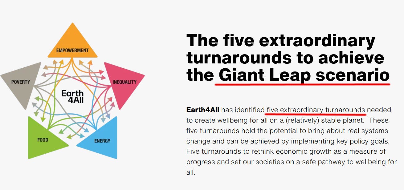 The organization “Earth4All”, an influential sustainability think tank originating from the Club of Rome, plans to save the planet with the scenario having a fitting name, “Giant Leap.”