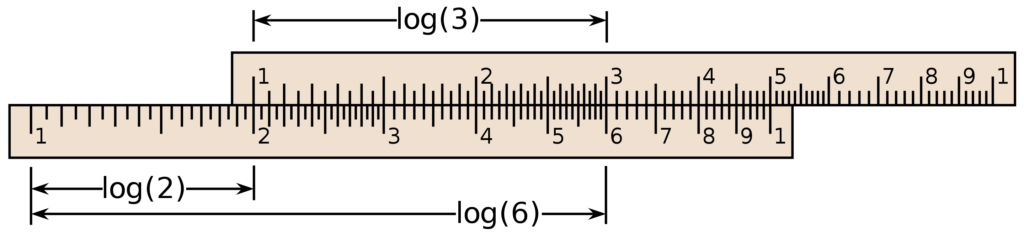 Computation was aided by the adoption of Hindu-Arabic numerals and the popularization of decimal notation. In 1614, John Napier’s introduction of the logarithm transformed multiplication into addition, and it was followed a decade later by the invention of the slide rule that could efficiently perform multiplication and division (see image below). The era also saw the introduction of printed mathematical tables. These tables document the values of standard mathematical functions and were crucial for computation before the advent of electronic calculators. Constructing them involved using known relationships such as trigonometric identities to compute new function values from old ones. While straightforward in theory, table construction was computationally demanding. The famous 1596 trigonometric table Opus Palatinum de Triangulis was an expensive endeavor financed by the Habsburg emperor Maximilian II: its 100,000 trigonometric ratios – accurate to up to ten decimal pIaces – took the mathematician Rheticus and his team of human computers 12 years to calculate, at a cost of more than 50 times Rheticus’s annual salary as a mathematics professor.
