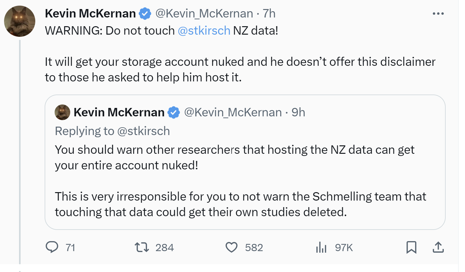 NOTE: I never asked Kevin to host my data. He made that decision himself and he published the link to X for everyone to see.