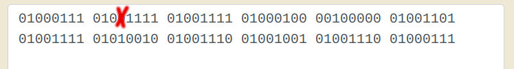 What if a computer error deletes one bit in the second letter of “GOOD MORNING”?