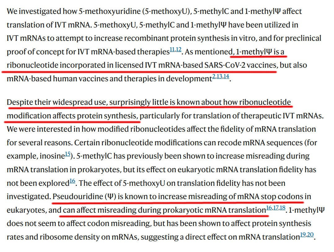 It turns out that mRNA COVID vaccine technology, using pseudouridineinstead of uridine, creates potential for “frameshifting,” which is the same thing as bit skipping in computers. Frameshifting means that the cellular machinery erroneously skips one genetic “bit,” causing all subsequently read data to become garbled.