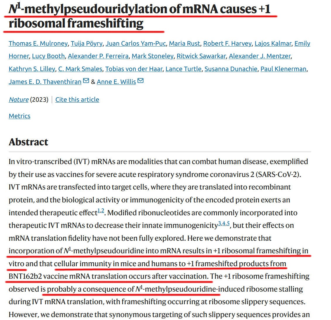 I feel very sorry for those inbred mice who developed immunity to unnecessary, garbage proteins created due to mRNA vaccine-caused frameshifting. What did these junk proteins do to the innocent rodents? Is the immunity, acquired essentially to random genetic sentences, going to impact the bodily functions of these mice, such as fertility? We have no idea, and neither do Mulroney and his co-authors.