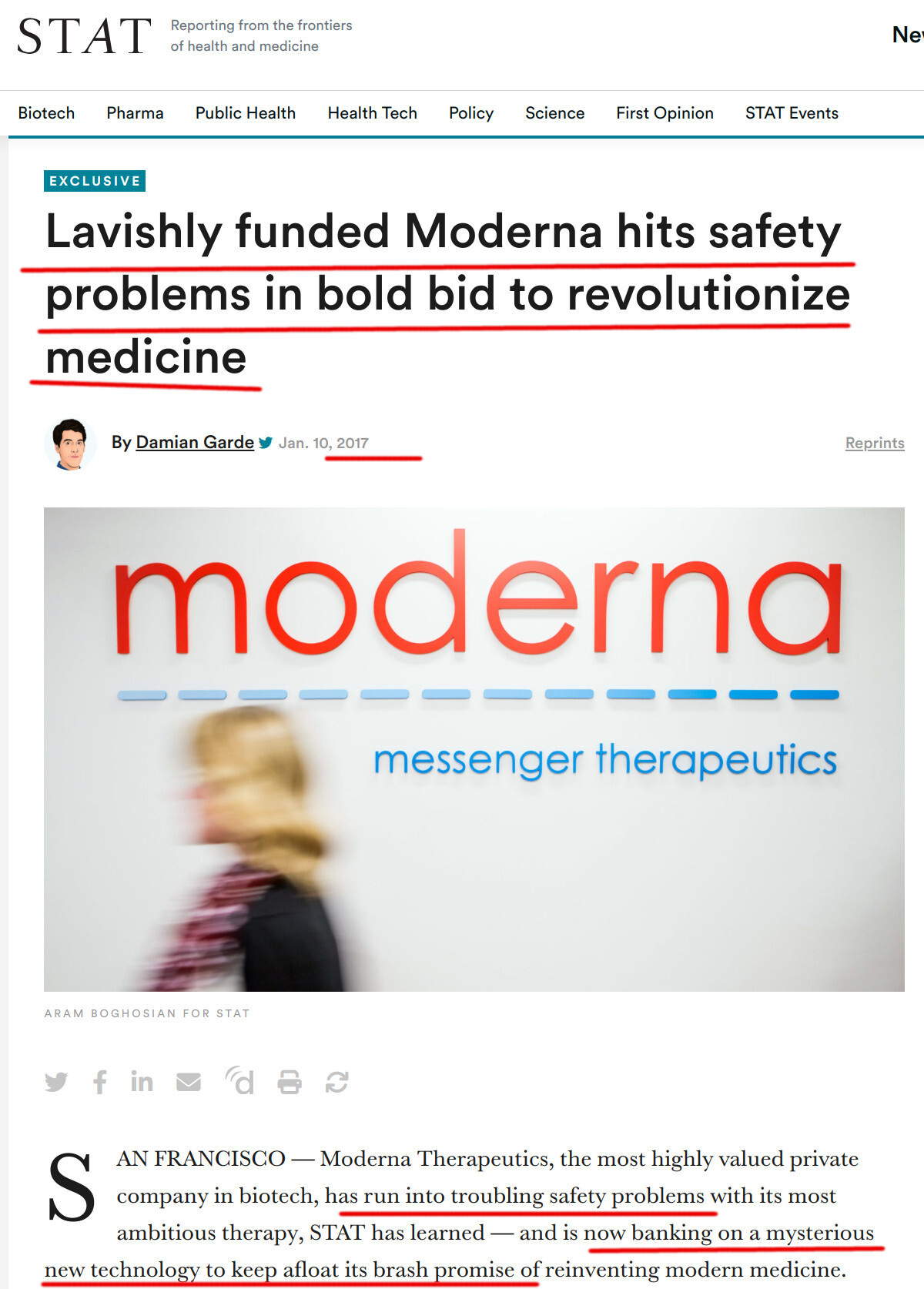 Safety problems, including dead and infertile animals, plagued mRNA technology trials. As a result, by 2017, as the Statnews article above points out, no successful products had materialized before 2020.