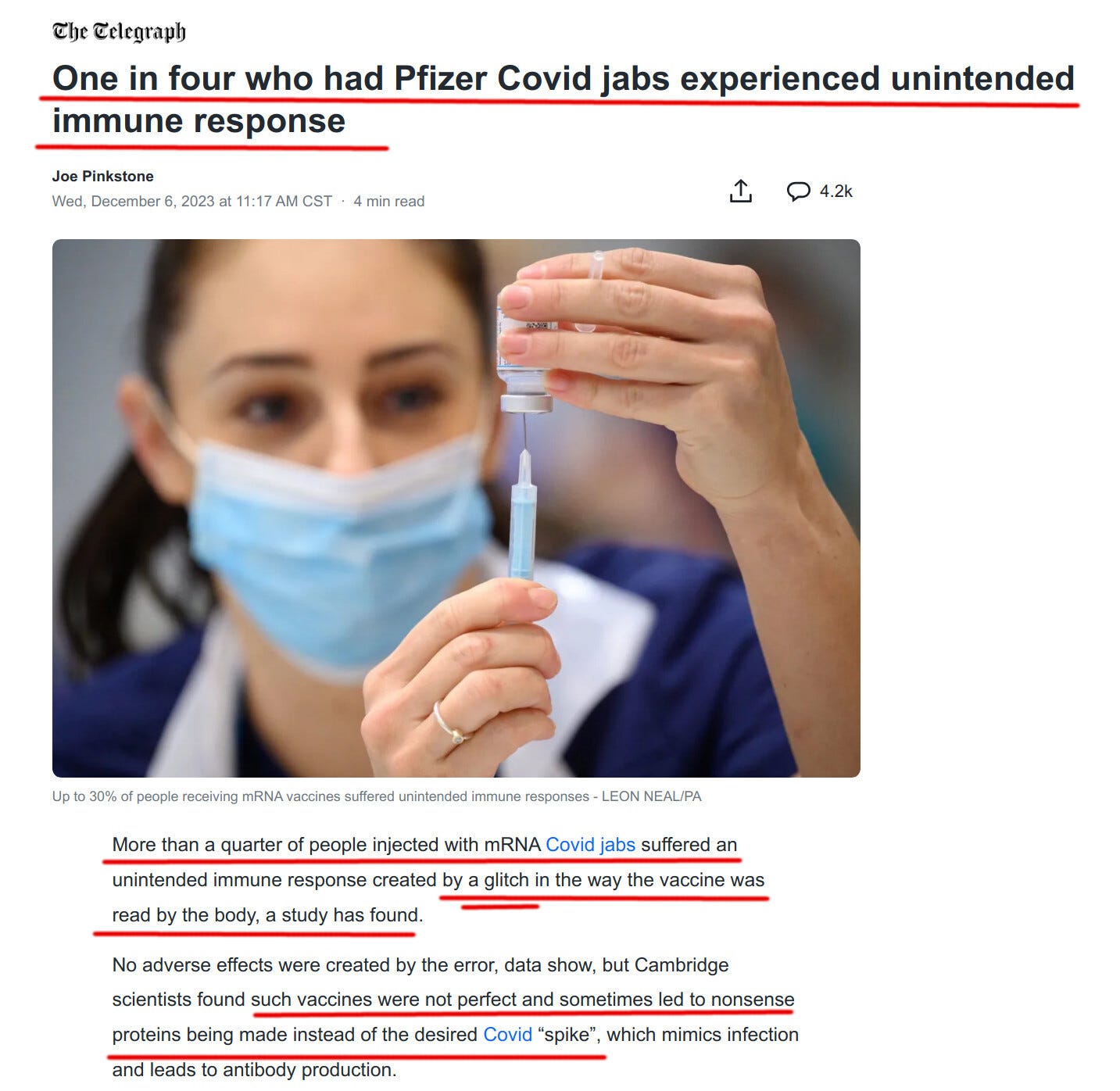 Scientists found that 25-30% of vaccinated people experience unintended immune response, as the Telegraph explains: