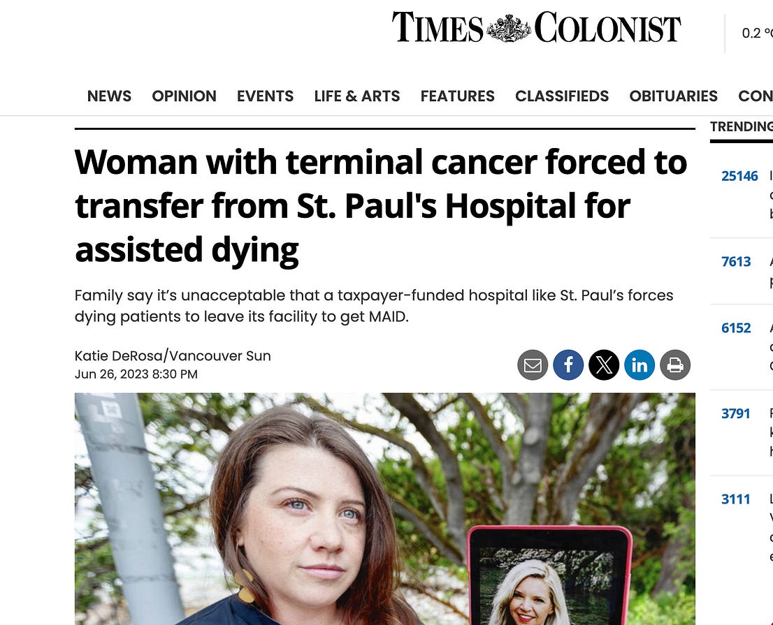 Even the United Nations is alarmed, and has stated that a government assisting people with dying for non-terminal conditions contravenes Article 10 of the UN Convention on the Rights of Persons with Disabilities.