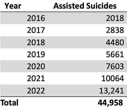 Here are the raw numbers of assisted suicides since the program’s inception, according to MAiD reports.