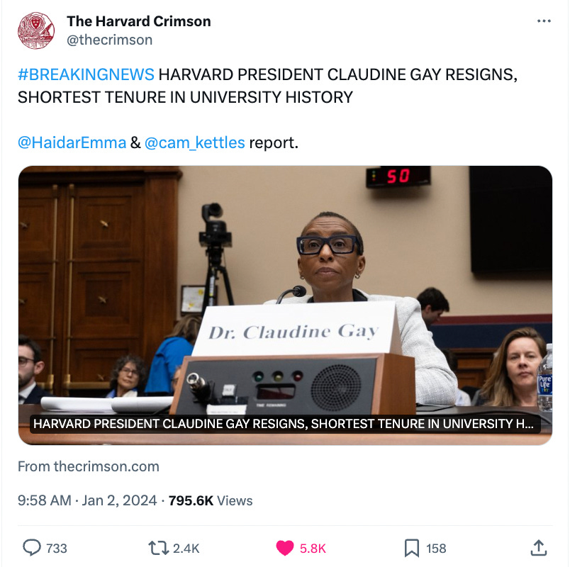 By Vinay Prasad, Jan. 1, 2024. Source: Harvard president resigns