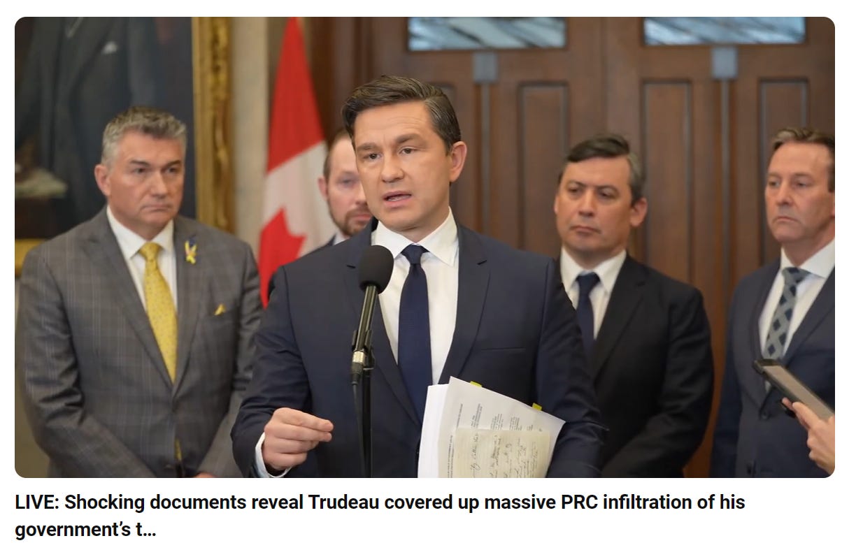Pierre Poilievre, leader of the Official Opposition in Canada led a news conference that YOU MUST WATCH. Specifically, watch the members of the press try to get their questions out. This is very, very bad for Trudeau: these seventeen minutes could signal the end of his tenure as Prime Minister. Canada’s cozy relationship with China, and China’s backdoor influence on matters in North America, may well be over, as well.