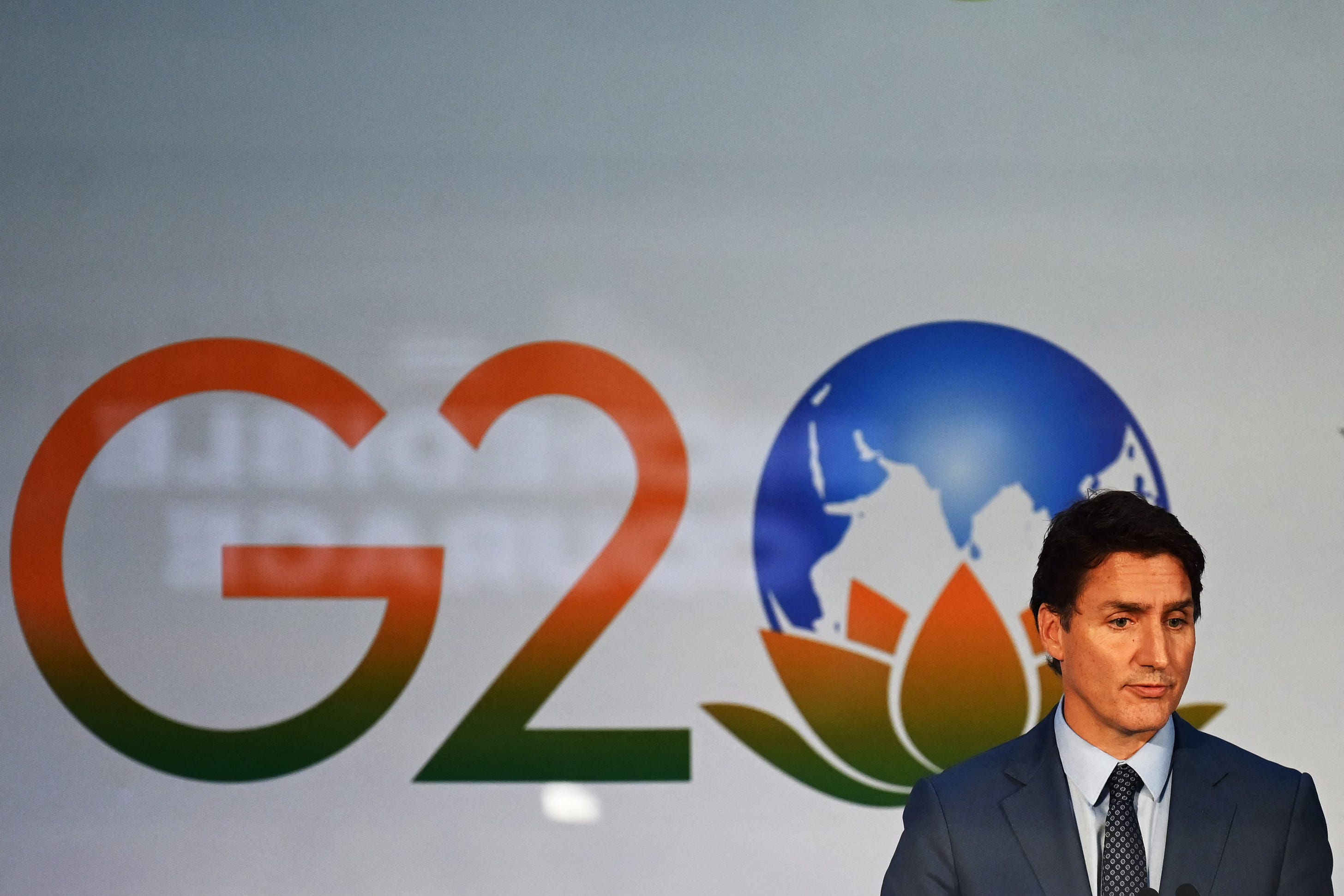 Canada’s Prime Minister Justin Trudeau attends a press conference after the closing session of the G20 summit in New Delhi on September 10, 2023. (Photo by Money SHARMA / AFP) (Photo by MONEY SHARMA/AFP via Getty Images)