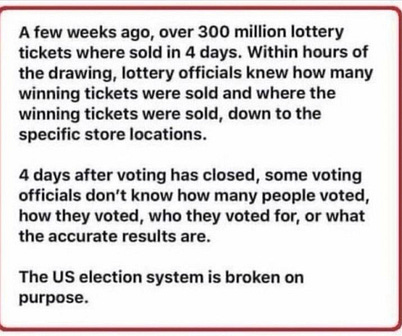 As we know, or should, during the 2020 election, hundreds of thousands of fake ballots were filled out in distant locations, brought to the counting centres by contracted postal workers, and entered into the system. Contracted postal workers have supplied sworn affidavits.