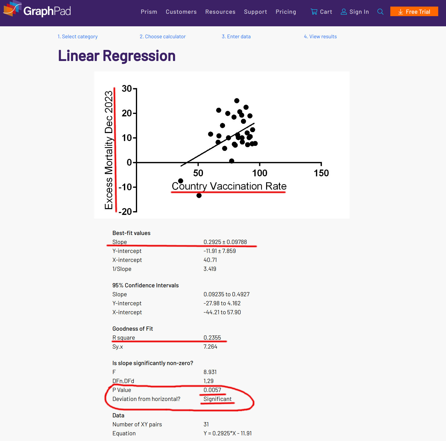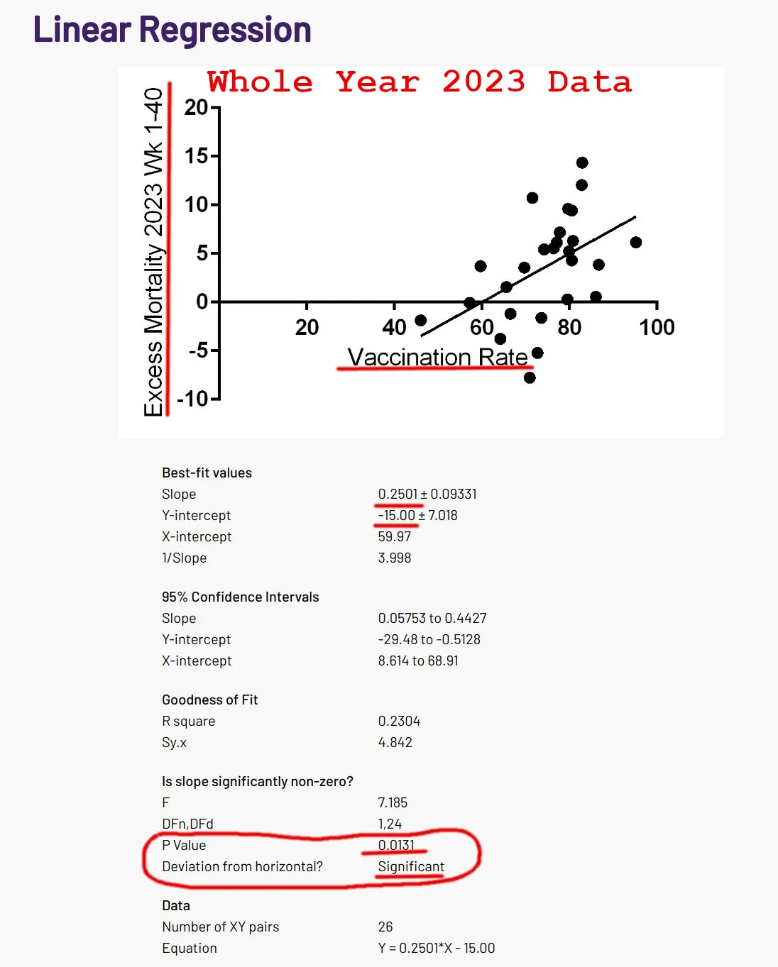 Source: Excess Mortality Still Correlated With COVID Vaccination Rate – Dec 2023 data