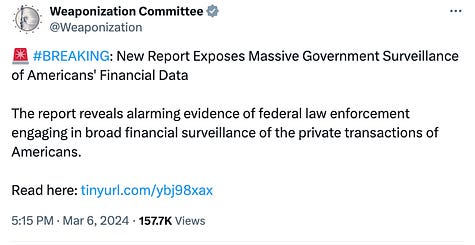 This new policy comes at a time when the House Select Subcommittee on the Weaponization of the Federal Government has revealed a broad governmental program of financial surveillance and data collection targeting conservative US citizens titled “FINANCIAL SURVEILLANCE IN THE UNITED STATES: HOW FEDERAL LAW ENFORCEMENT COMMANDEERED FINANCIAL INSTITUTIONS TO SPY ON AMERICANS “. There is the appearance that Stripe may be acting at the behest of this politically motivated illegal and selective federal law enforcement program.