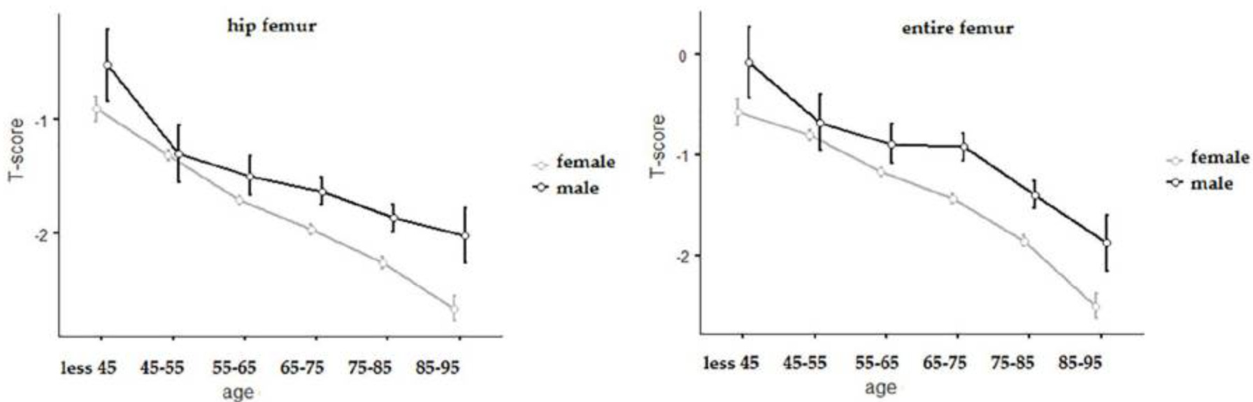 Hence, many people due to the normal process of aging will have osteopenia or osteoporosis. Consider for example what this study concluded was of the average T-score by age of Italians.