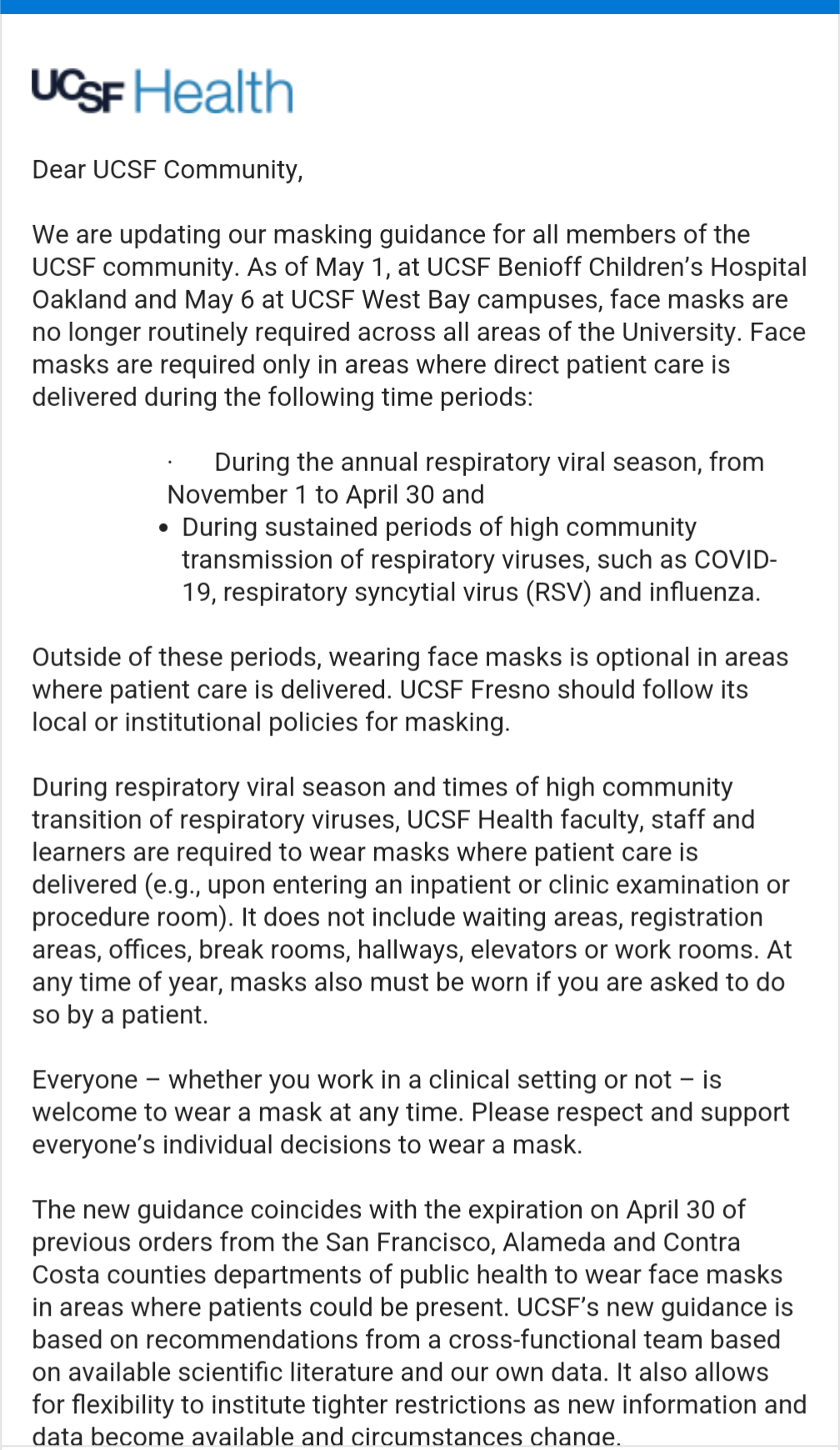 After 4 years, our mask mandate ended May 2, 2024. My patients and I are finally (officially) mask free. But mask mandates will return.