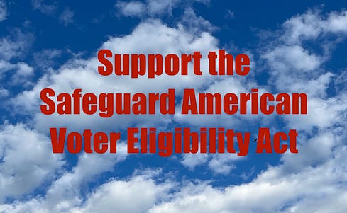 If you agree, please share this (Substack)—and ask your members of Congress to cosponsor the SAVE Act today!