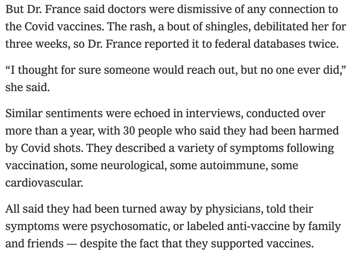 This passage illustrates another common way vaccine injuries are gaslightedand neglects to mention that: