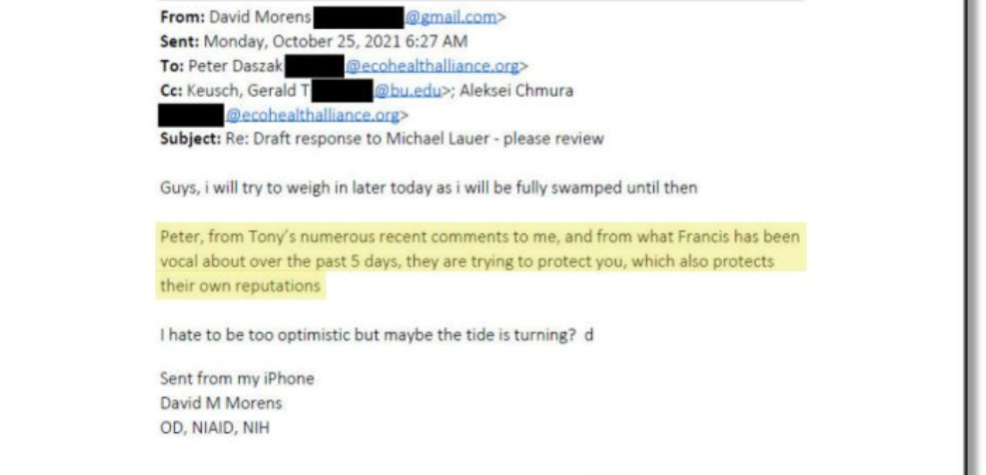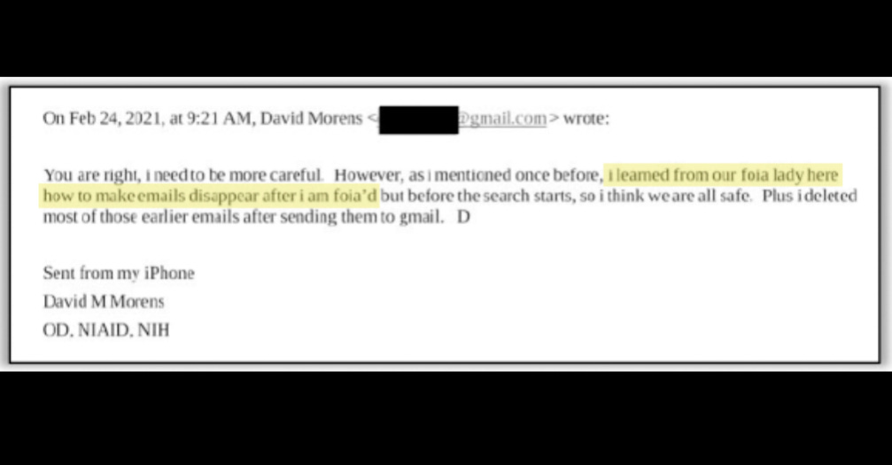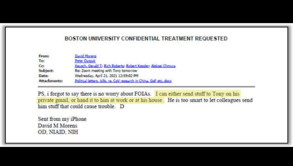 The emails of David Moran, a Fauci aid, are damning. He specifically states that Fauci used private Gmail to hide his communications on the lab leak hypothesis from the public. This is in direct violation of NIH policy.