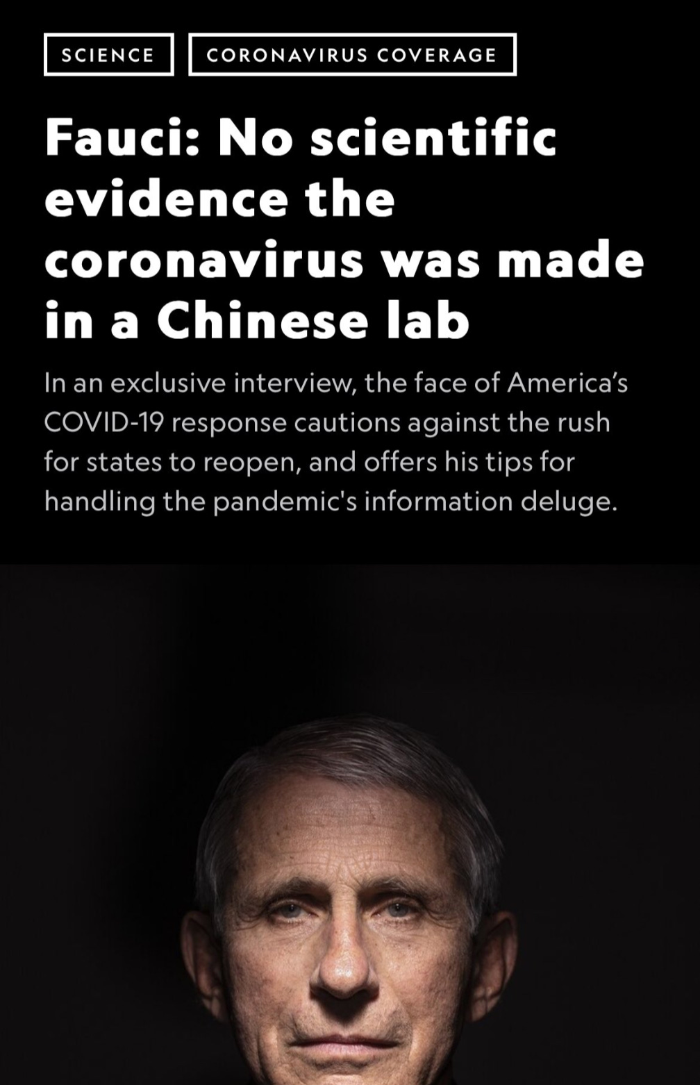 What Fauci didn’t say to NatGeo was there is no evidence because he is actively destroying his emails and other communications with Peter Daszak.