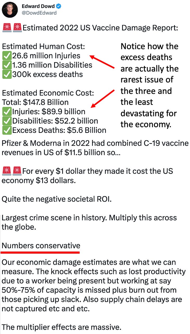 The best assessment I’ve seen of the impact of these vaccines came from the report Ed Dowd’s team put together, which I must note was conservative in its estimate (because they didn’t want to claim harms they suspected were there but did not have the data to support):