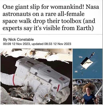 I wouldn’t care except our entire culture lies in the hands of these women. The pretty boys stood up as “leaders” are elected by them. Trudeau, Rishi, Macron, Obama were made in a lab to appeal to women who call themselves “feminists”. Most of them – remember Obama’s cradle-to grave Julia? – are childless, and/or without a partner; the rest terrorize their families into quiescence. Honey, all the battles have been won and were won thirty years ago – you are just cosplaying actual feminists who opened the professions for women. I mean there is even a spacewalk team that is women. They dropped their tool box into space, but never mind, they were women.