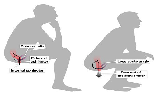 Unfortunately, due to our anatomy, this positional change is much more problematic than we realize as it compresses the rectum and hence makes it much harder to force feces through it.