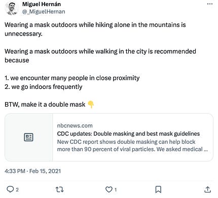 Intense partisan bias affected these professors’ decision making during COVID19. Miguel Hernan, who believes Biden has a stutter, supported double masking outside, a ludicrous idea.