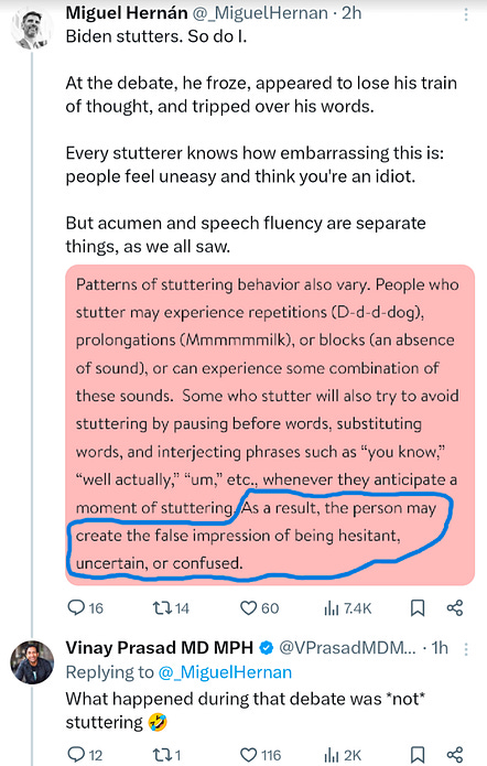 First, Miguel Hernan from Harvard, claims that Biden was just stuttering!